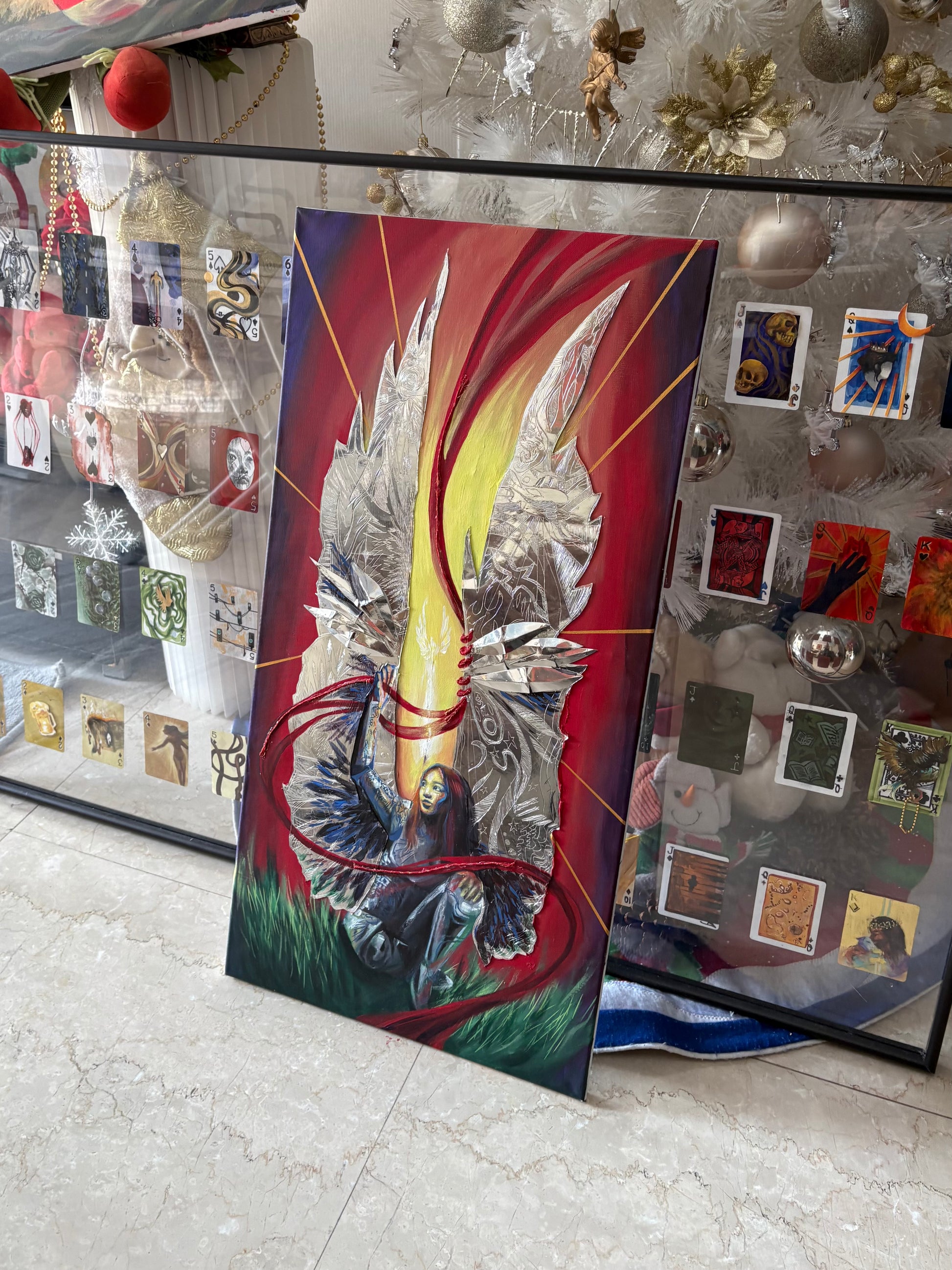 "Stitches of Refinery" captures an intimate 19th birthday portrait adorned with ethereal metal wings and delicate stitched details—a powerful symbol of transformation and self-discovery within her Creator. Each print showcases the artist's signature blend of portraiture and mixed-media elements, creating a piece that resonates with anyone marking a significant life transition. Perfect for personal reflection or as a meaningful gift, this artwork transforms any space into a gallery of growth and resilience.